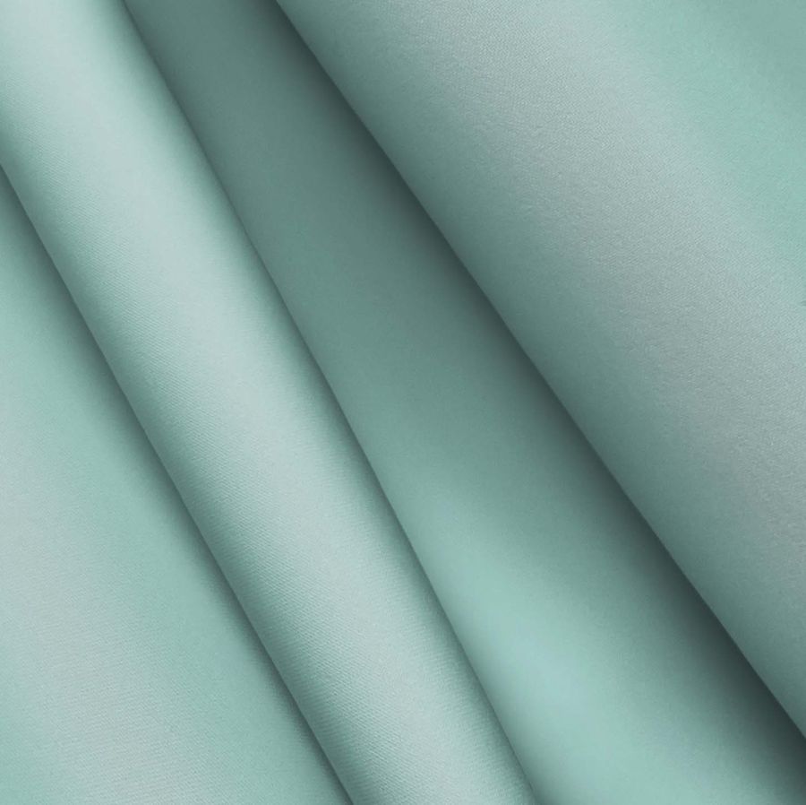 La tela base es el Poliéster Reciclado Deportivo - Basic, compuesta por un 93% de poliéster y 7% de elastómero, con un gramaje de 145 gr/m2 y un ancho de 145 cm. Esta tela tiene una textura suave y lisa al tacto. El color liso impreso es un verde azulado creado con una combinación de 50% de tinta cian, 10% de tinta magenta y 32% de tinta yellow, con un valor del 0% de tinta black, logrando un CMYK de 50 10 32 0. Este color secundario es una opción fresca y natural, que se combina muy bien con tonalidades de blanco, amarillo, rosa y gris.