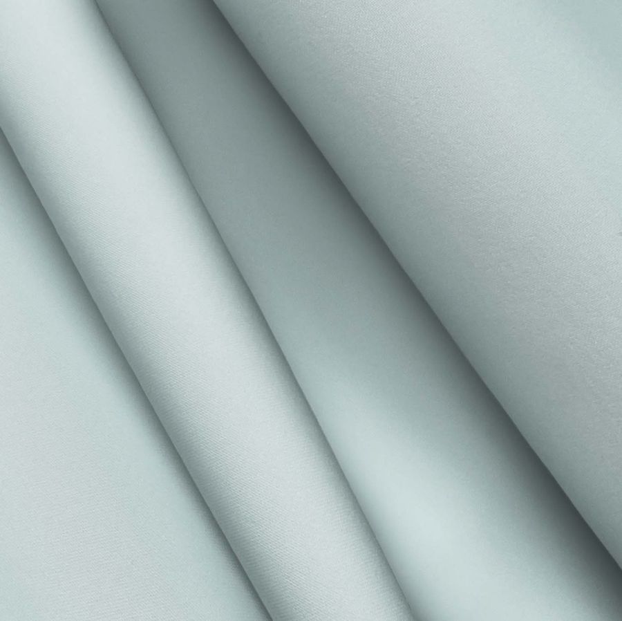 La tela base es el Poliester Reciclado Deportivo - Basic, compuesta por 93% poliéster y 7% elastómero, con un gramaje de 145 gr/m2 y un ancho de 145 cm. El color liso impreso es de un tono verde-crema de menta, con un CMYK de 29 5 17 0. Simbólicamente, este color representa la frescura y la calma, y técnicamente es una mezcla de tonos verdes y blanco roto. Combina bien con otros tonos verdes, naranjas y rosas pálidos. Este tejido está impreso con el color liso a una sola cara por impresión digital textil, lo que significa que no está tintado, sino que se imprime la imagen directamente sobre la superficie de la tela.