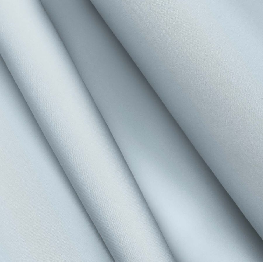 La tela base es el Poliéster Reciclado Deportivo - Basic, con una composición de 93% poliéster y 7% elastómero, un gramaje de 145 gr/m2 y ancho de 145 cm. El color liso impreso en la tela es un Azul Claro con un valor CMYK de 25 4 6 0. Este color aporta una sensación de frescura y luminosidad, simbolizando libertad y tranquilidad. Combinado principalmente con blanco y gris, transmite una sensación de limpieza y pureza. La impresión se realiza a una sola cara por impresión digital textil, creando un efecto de color vivo y con gran nitidez.