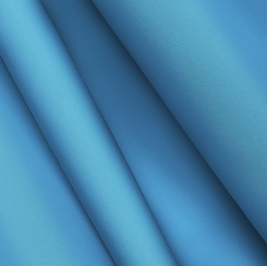 La tela base es Poliester Reciclado Deportivo – Basic, compuesta por 93% de poliéster y 7% de elastómero, con un gramaje de 145 g/m2 y un ancho de 145 cm. Su color liso Azul Seda tiene una tinta Cyan del 72, una tinta Magenta del 34, una tinta Yellow del 2 y ninguna tinta Black, con un CMYK de 72 34 2 0. Este color es simbólico de frescura, relajación y tranquilidad, y técnicamente se combina muy bien con tonos grisáceos, blancos y verdes.