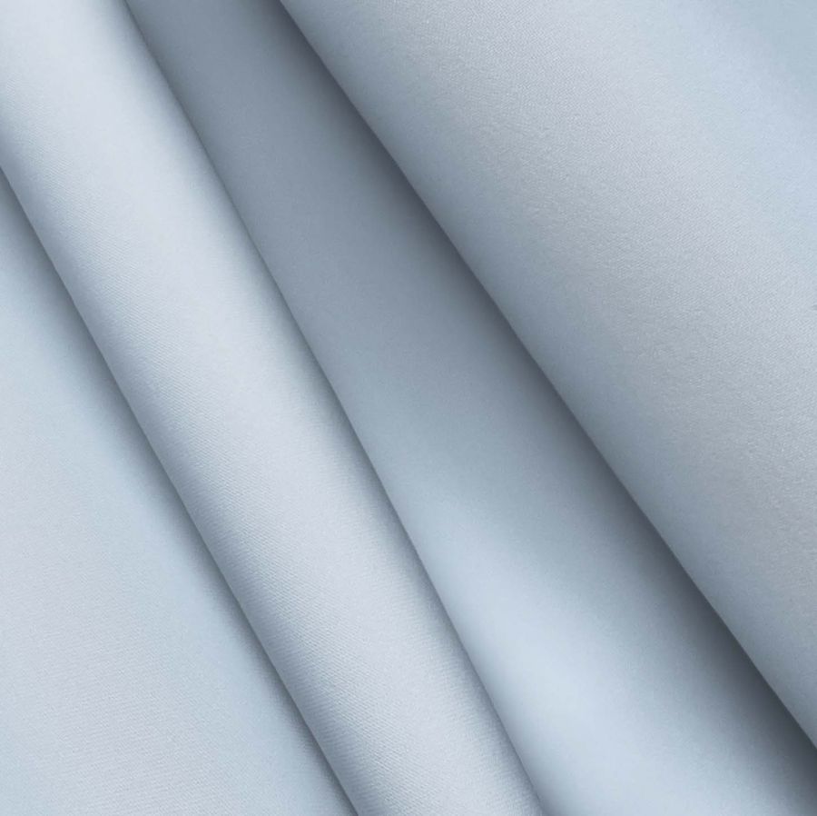 La tela base es Poliester Reciclado Deportivo - Basic, con una composición del 93% de poliéster y 7% de elastómero, un gramaje de 145 gr/m2 y un ancho de 145 cm. Su color liso impreso es de un azul pastel suave, representado por el CMYK 29 9 3 0, que combina especialmente bien con tonos neutros como el blanco y el gris.
