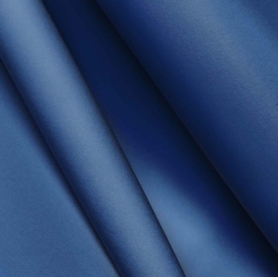 La tela base es el Poliester Reciclado Deportivo - Basic, con una composición de 93% poliéster y 7% elastómero, gramaje de 145 gr/m2, ancho de la tela de 145 cm y certificación GRS que garantiza su sostenibilidad al ser fabricada con materiales reciclados. El color liso impreso es un intenso Azul lapislázuli, con una tintada CMYK de 100 80 29 13. El color secundario de esta tela es un cálido y suave tono marrón, que combina especialmente bien con colores terrosos como el beige, el caqui y el terracota.