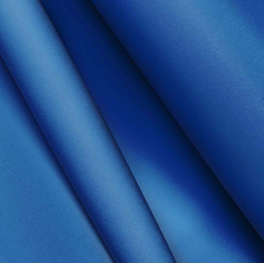 La tela base es Poliester Reciclado Deportivo - Basic, una composición de 93% poliéster y 7% elastómero con un gramaje de 145 gr/m2 y una anchura de 145 cm. El color liso impreso es Azul arándano, con una medida de 100% tinta Cyan, 75% tinta Magenta, 7% tinta Yellow y 0% tinta Black, lo que da como resultado un tono predominante de azul muy vivo y brillante. Este color se asocia con la calma, la confianza y la tranquilidad, y combina bien con otros tonos frescos como el blanco, el rosa palo y el verde menta.