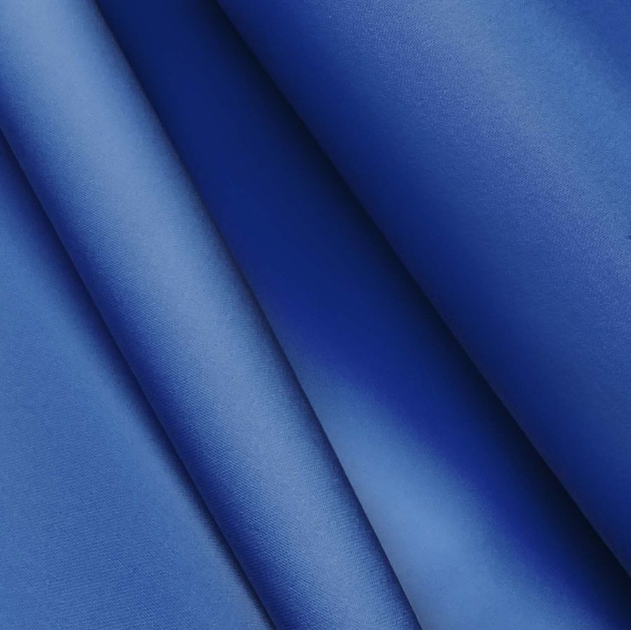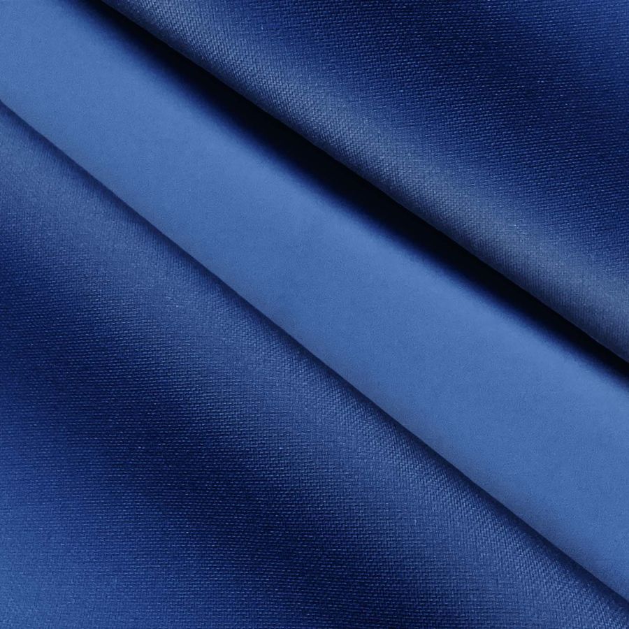 La tela base es el Poliester Reciclado Deportivo - Basic, compuesta en un 93% por poliéster y un 7% por elastómero, con un gramaje de 145 gr/m2 y un ancho de 145 cm. Su color liso impreso es un azul arándano con un CMYK de 97 77 6 0, lo que se traduce en un tono vibrante y llamativo que combina perfectamente con tonalidades terrosas y blancas. El tejido está impreso con el color liso a una sola cara mediante impresión digital textil.