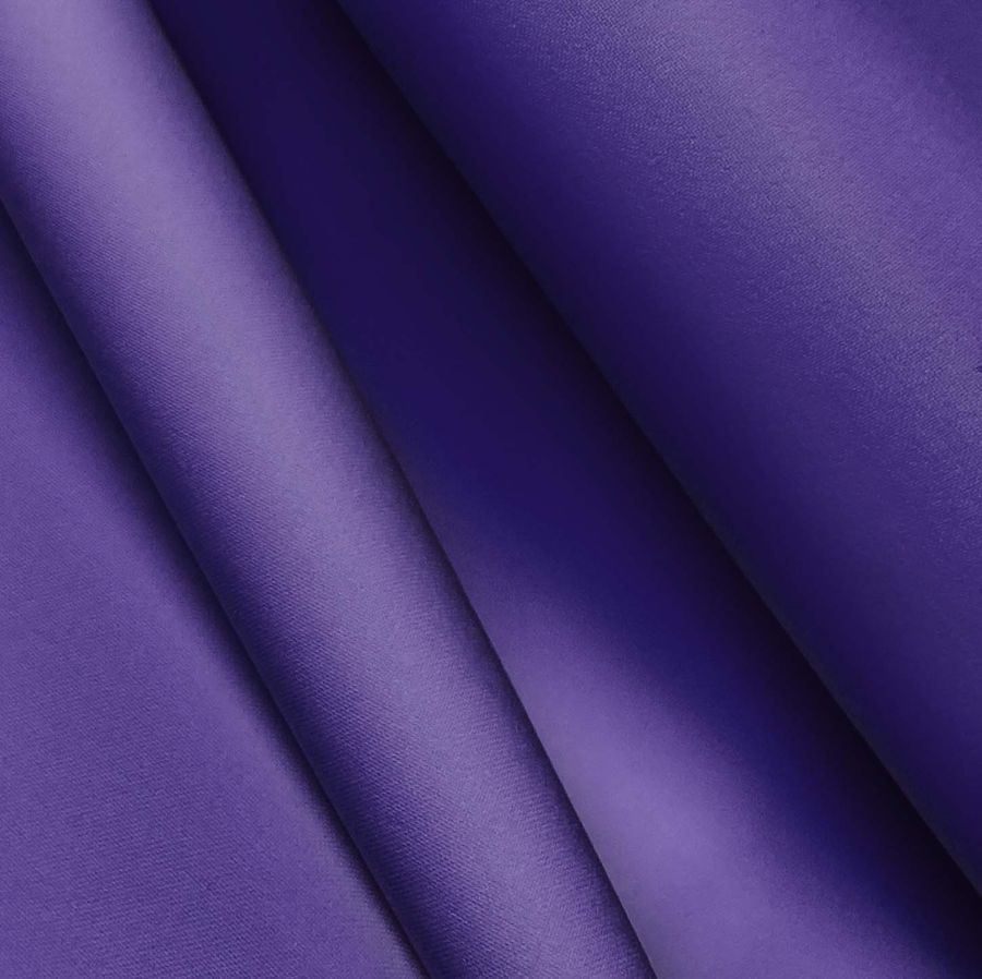 La tela base es Poliester Reciclado Deportivo - Basic, compuesta por 93% poliéster y 7% elastómero, con un gramaje de 145 gr/m2 y un ancho de 145 cm. El color liso impreso es Morado, Monstruo Morado, con una tinta Cyan del 95, Magenta del 100, Yellow del 16 y Black del 5, representando un CMYK de 95 100 16 5. Es importante mencionar que la tela está impresa con el color liso a una sola cara por impresión digital textil.