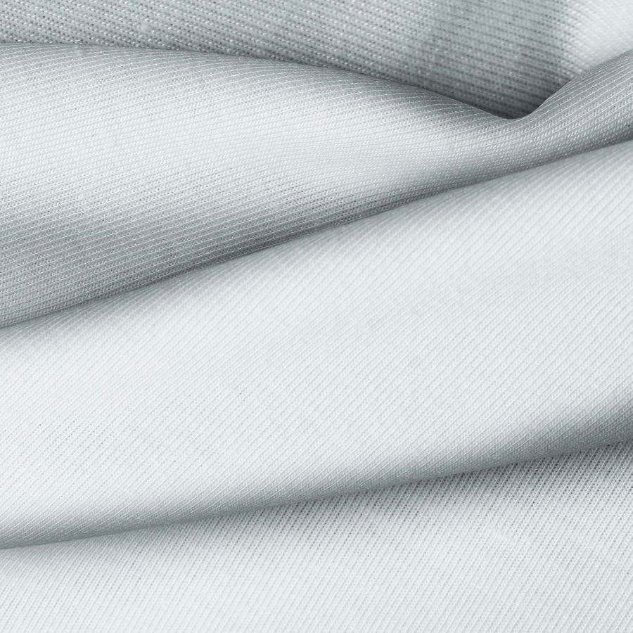 La tela base es de punto camiseta Vanity en color azul lirio pálido, con un CMYK de 19 5 9 0. Este color suave y vibrante combina especialmente bien con tonos neutros como blancos y grises, así como con tonos pasteles como rosas y amarillos. La tela está impresa con este color liso a una sola cara por impresión digital textil, lo que le da una apariencia nítida y duradera.