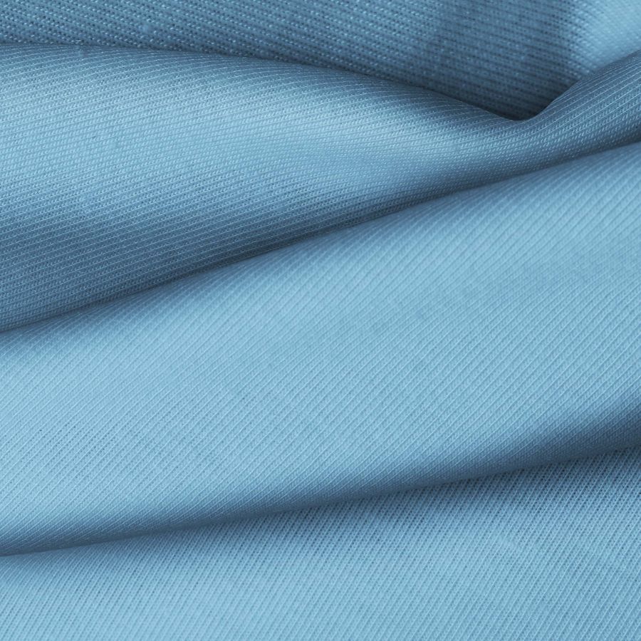 La Tela de Punto Camiseta - Vanity es de color Azul Koi, con una combinación de tintas CMYK de 63 32 18 3. Este color secundario simboliza tranquilidad, creatividad y frescura, combinando especialmente bien con tonos neutros como blanco, gris y negro.