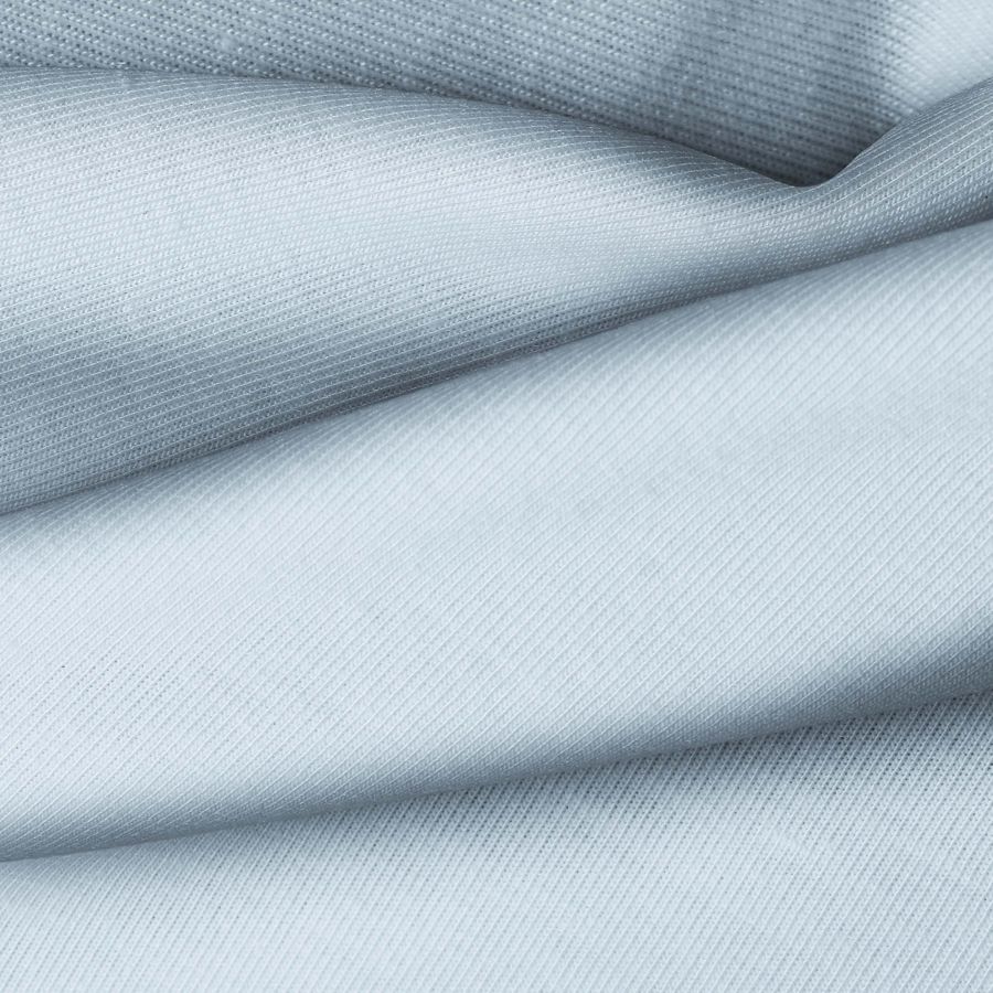 La tela base, denominada Punto Camiseta - Vanity, es de punto y está compuesta por un 95% de poliéster y un 5% de elastómero, con un gramaje de 185 gr/m2 y un ancho de 160 cm. El color liso impreso, Azul Ángel, tiene un CMYK de 35 14 10 0. Este color simboliza la calma y la serenidad, con una combinación de tonos azules y blancos que evocan la pureza y la paz. Combina especialmente bien con tonos neutros como el blanco, el gris y el negro.