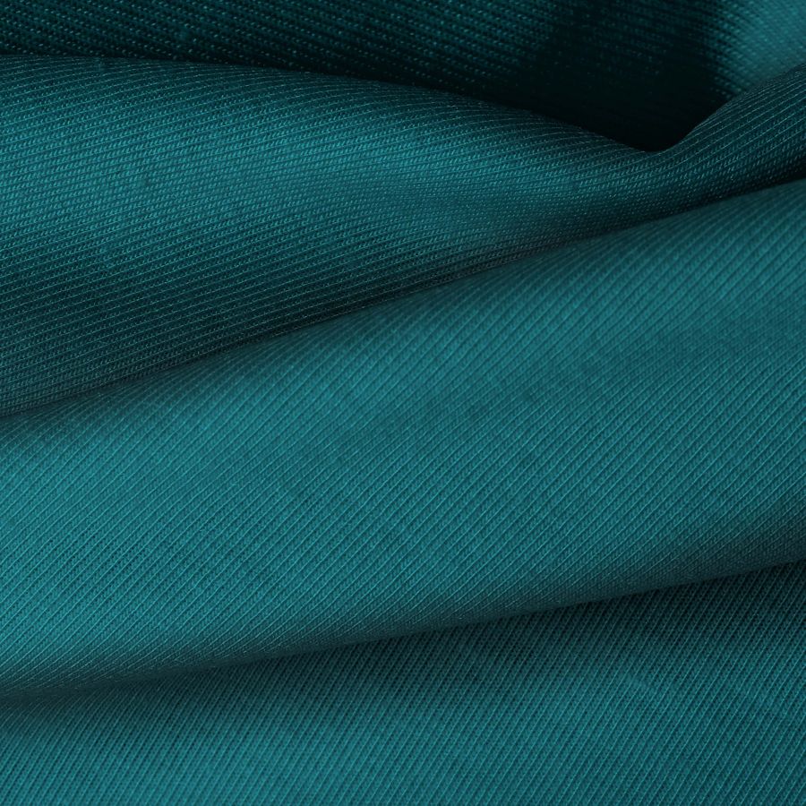 La tela base Punto Camiseta - Vanity en color Verde Teal profundo destaca por su suavidad y elasticidad, reflejando un CMYK de 93 50 52 49. Este color secundario simboliza la frescura y tranquilidad de la naturaleza, combinando especialmente bien con tonos neutros como blanco, gris y negro.