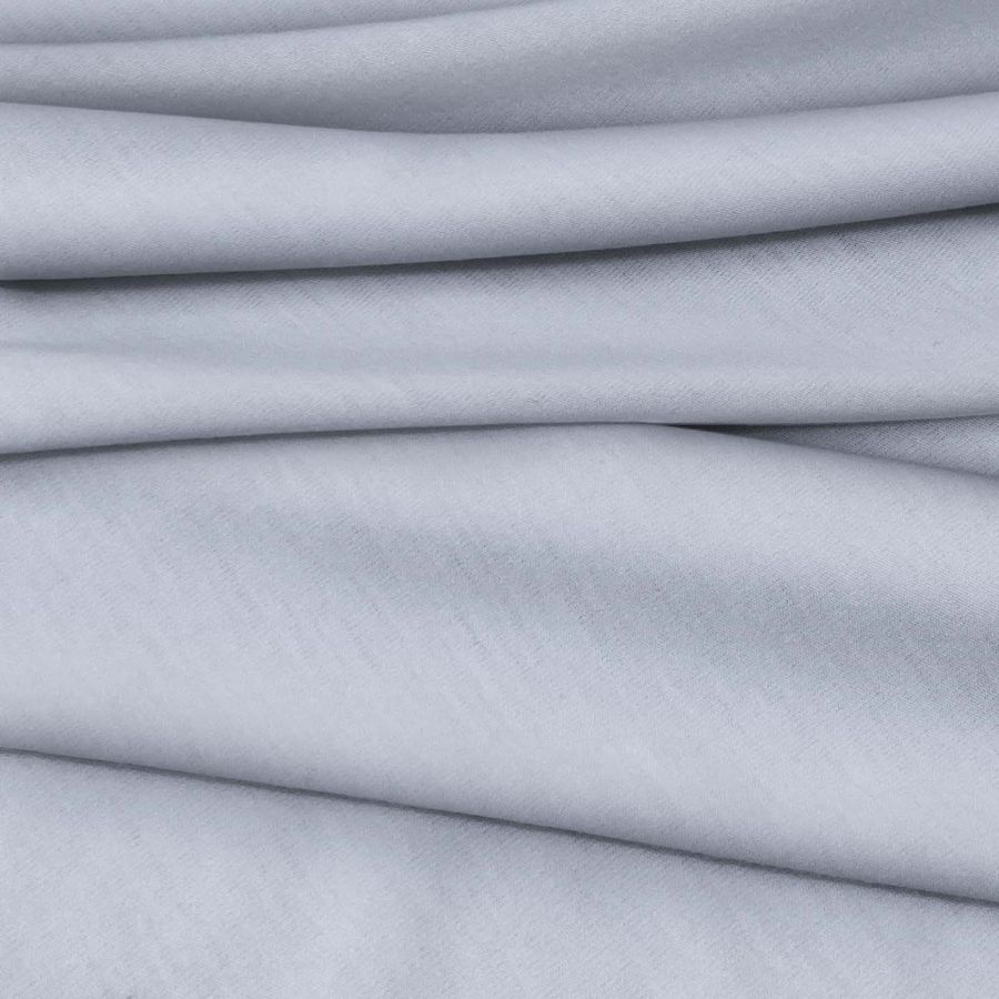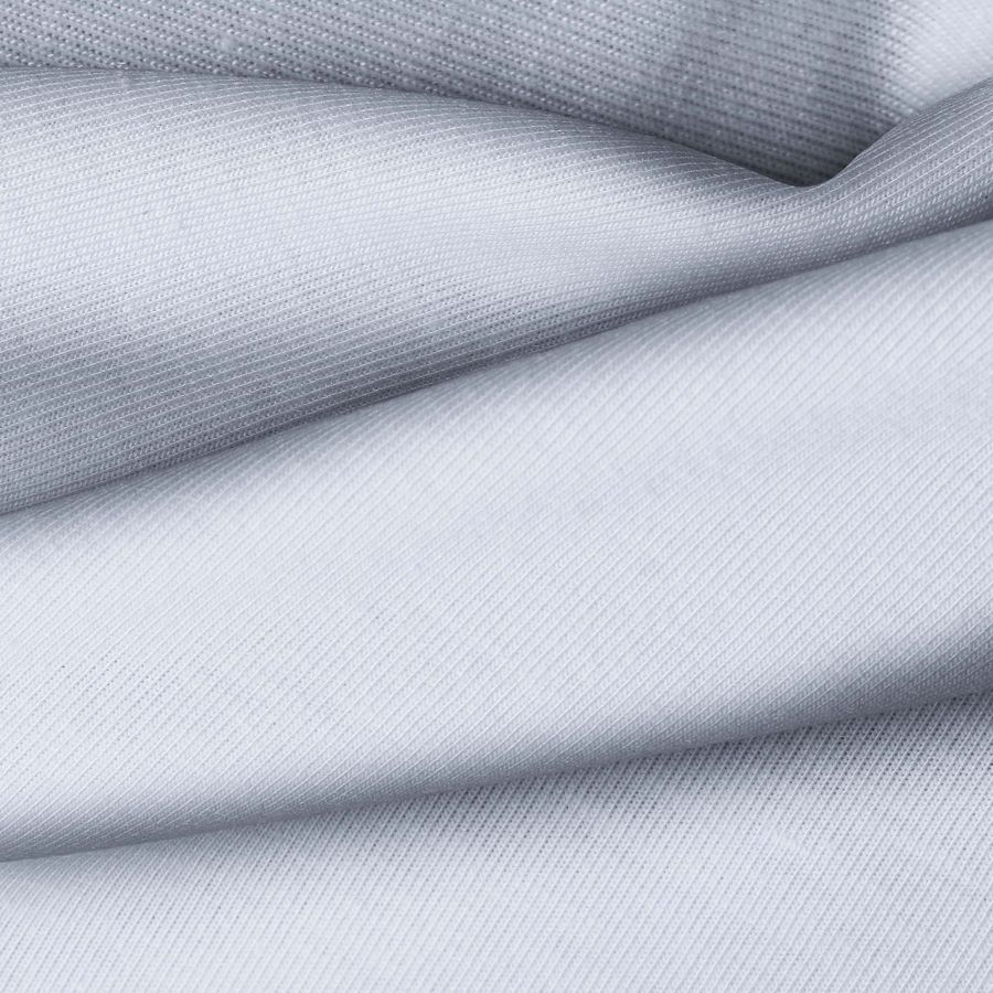 La tela base, Punto Camiseta - Vanity, es suave y elástica, con un color liso impreso en tonalidades de Azul Angel, representado por un CMYK de 29 18 7 0. Este color secundario simboliza la tranquilidad y la serenidad, combina especialmente bien con blanco, gris y beige. El tejido está impreso con dicho color liso a una sola cara por impresión digital textil.