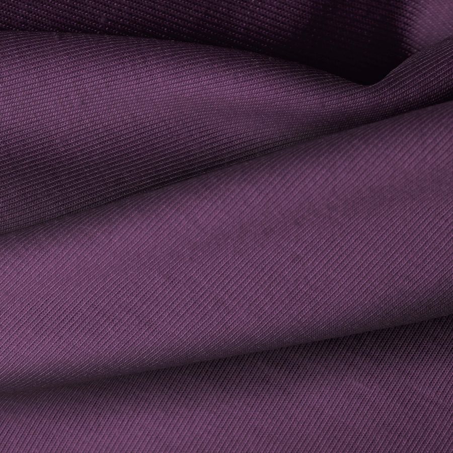 La tela Punto Camiseta - Vanity es de color morado oscuro, con un CMYK de 71 87 42 51. Este color simboliza la creatividad, la sabiduría y la espiritualidad. Combina muy bien con tonos neutros como el blanco, el gris y el negro, así como con tonos más vibrantes como el rosa y el azul.