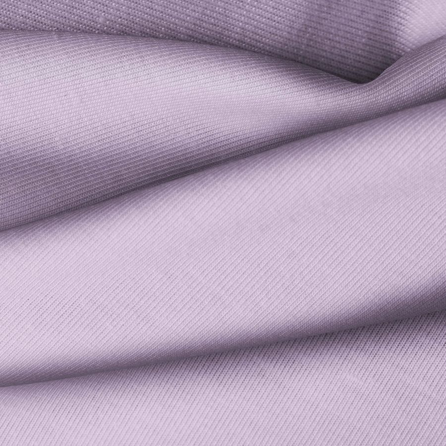 La tela base, Punto Camiseta - Vanity, es una tela de punto compuesta por 95% de poliéster y 5% de elastómero, con un gramaje de 185 gr/m2. El color liso impreso es Morado Lavanda púrpura, con un CMYK de 35 41 13 1, lo que le da un tono suave y delicado. Este color secundario combina especialmente bien con tonos neutros como blancos y grises, así como con colores complementarios como el verde y el amarillo.