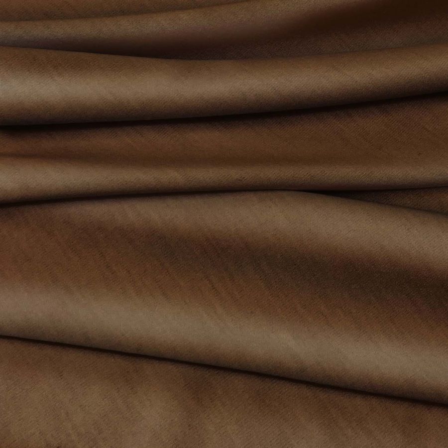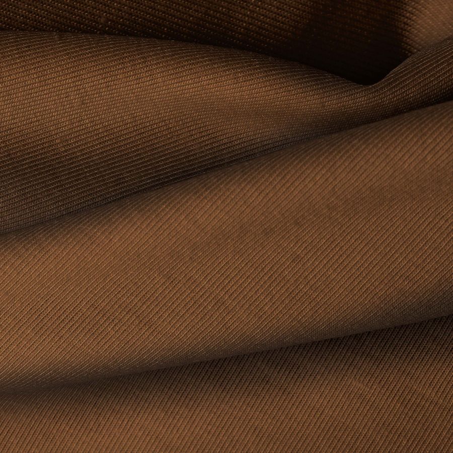 La tela base utilizada es el Punto Camiseta - Vanity, la cual tiene una composición de 95% poliéster y 5% elastómero y un gramaje de 185 gr/m2. El color liso impreso en la tela es Marron y Frijol, con una combinación de tintas CMYK de 45 71 88 67. Este color secundario tiene una connotación de calidez y naturalidad, combinando a la perfección con tonos neutros como beige, blanco y negro.