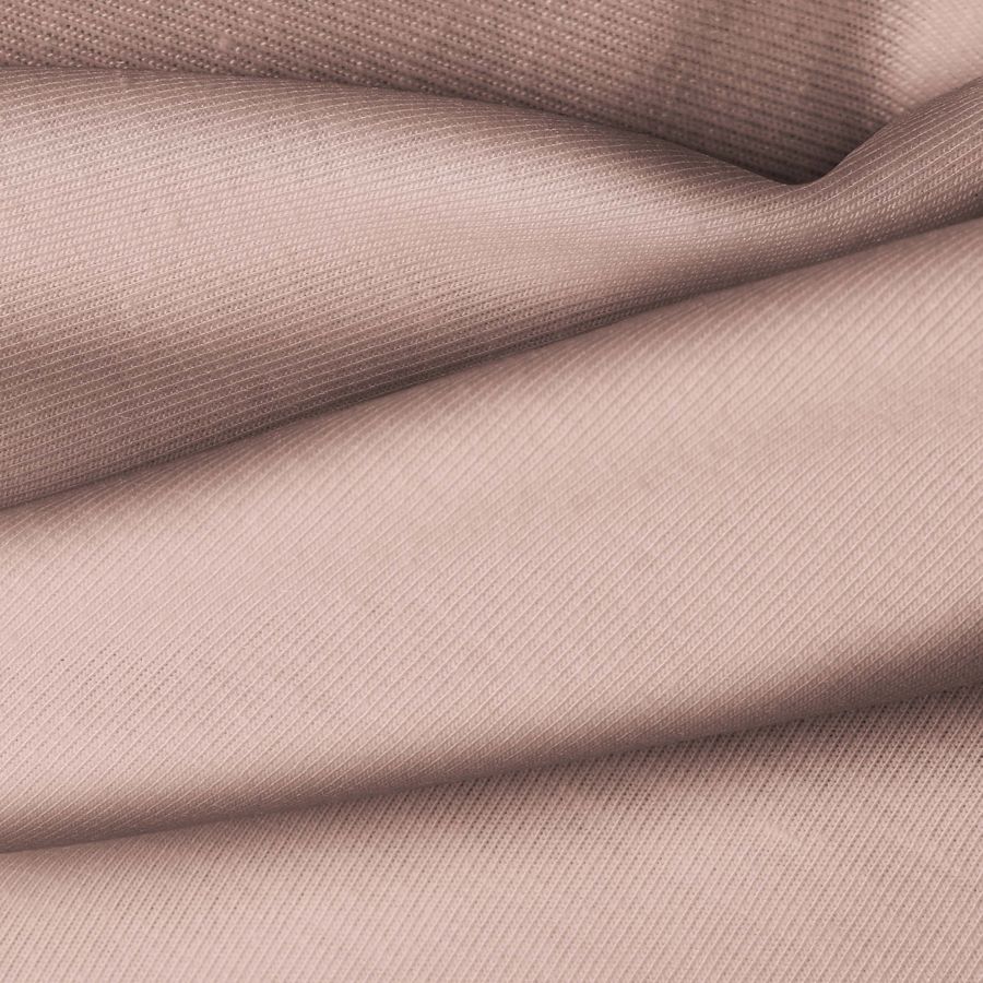 Las características generales de la tela base incluyen su suavidad al tacto y elasticidad, lo que la hace cómoda de llevar y fácil de adaptar a diferentes tipos de prendas. En cuanto al color liso impreso, su sutil combinación de tonos marrones y rosados lo hace versátil y adecuado para diversas ocasiones.