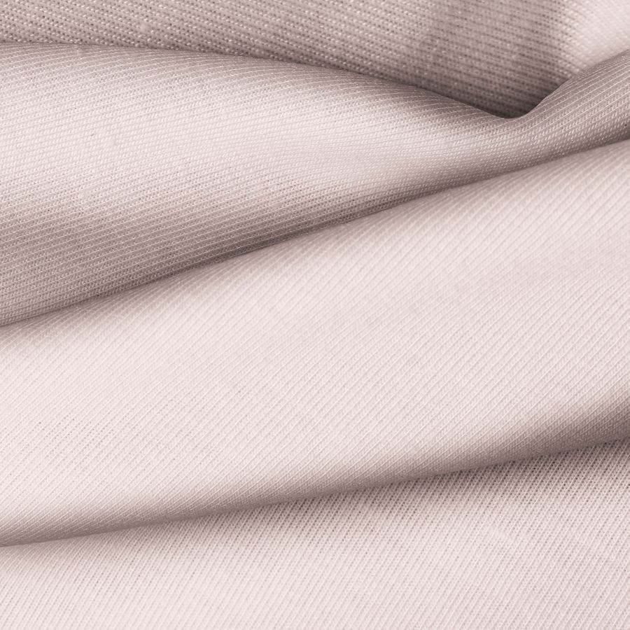 La tela base Punto Camiseta - Vanity es de punto, con una composición de 95% poliéster y 5% elastómero, de color liso impreso en tonos de rosa y oro (CMYK: 8 25 19 0). Este color primario simboliza la feminidad, el amor y la riqueza. Combina bien con tonos neutros como blanco, gris y negro.