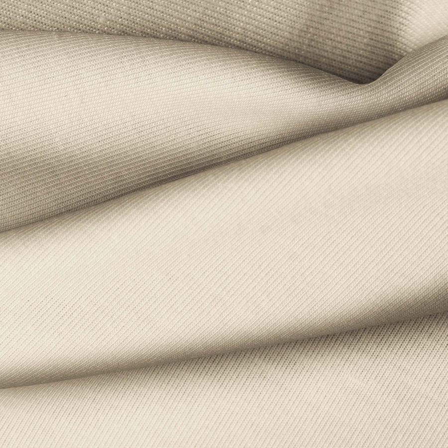 La tela base, Punto Camiseta - Vanity, es de punto con una composición de 95% poliéster y 5% elastómero, con un gramaje de 185 gr/m2 y un ancho de 160 cm. El color impreso en esta tela es Crudo, Almendra, con un CMYK de 15 20 36 2. Este color secundario se caracteriza por su suavidad y calidez, combinando especialmente bien con tonos tierra y neutros.