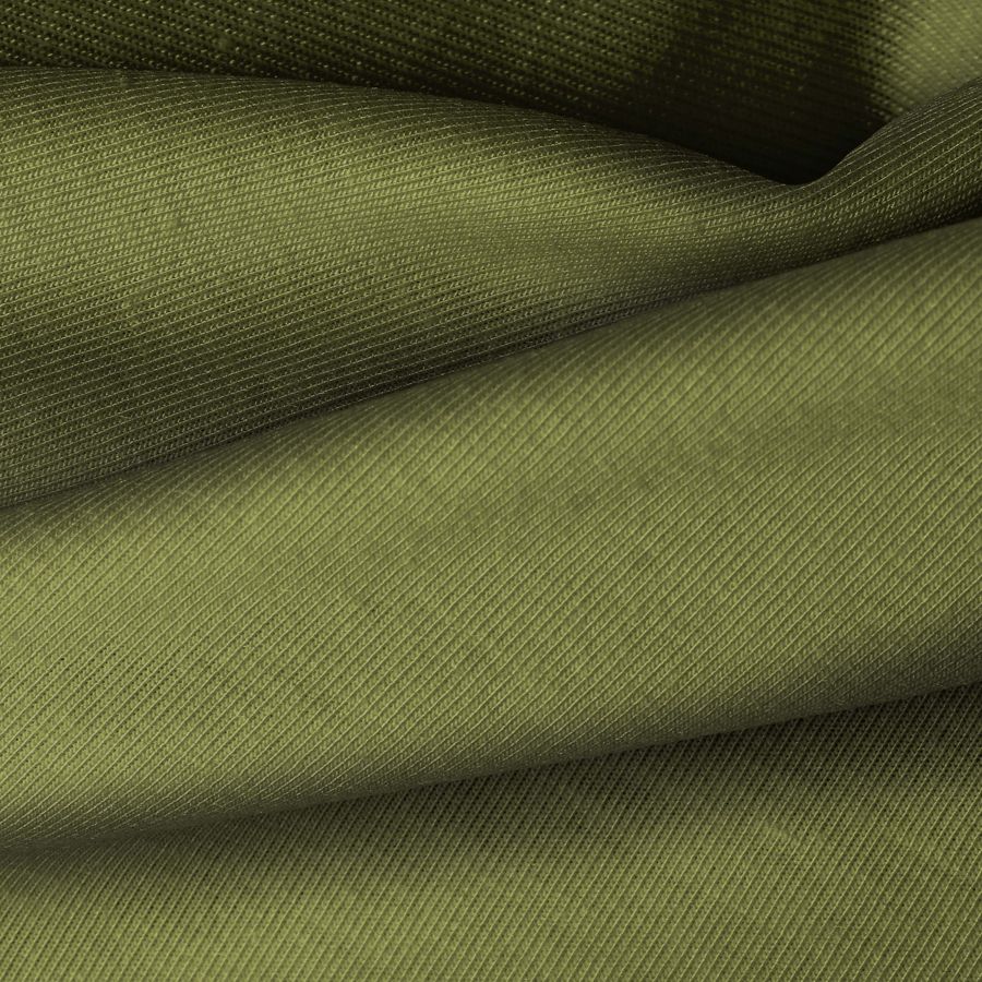 La tela base Punto Camiseta - Vanity es de tipo tela de punto, compuesta por 95% POLIÉSTER y 5% ELASTÓMERO, con un gramaje de 185 gr/m2 y un ancho de 160 cm. El color liso impreso es Verde Tierra con un CMYK de 61 45 88 41. Este color secundario evoca la naturaleza, simbolizando la frescura de la hierba y la tierra fértil. Combina perfectamente con tonos neutros como beige y marrón, así como con colores vivos como el amarillo y el naranja.