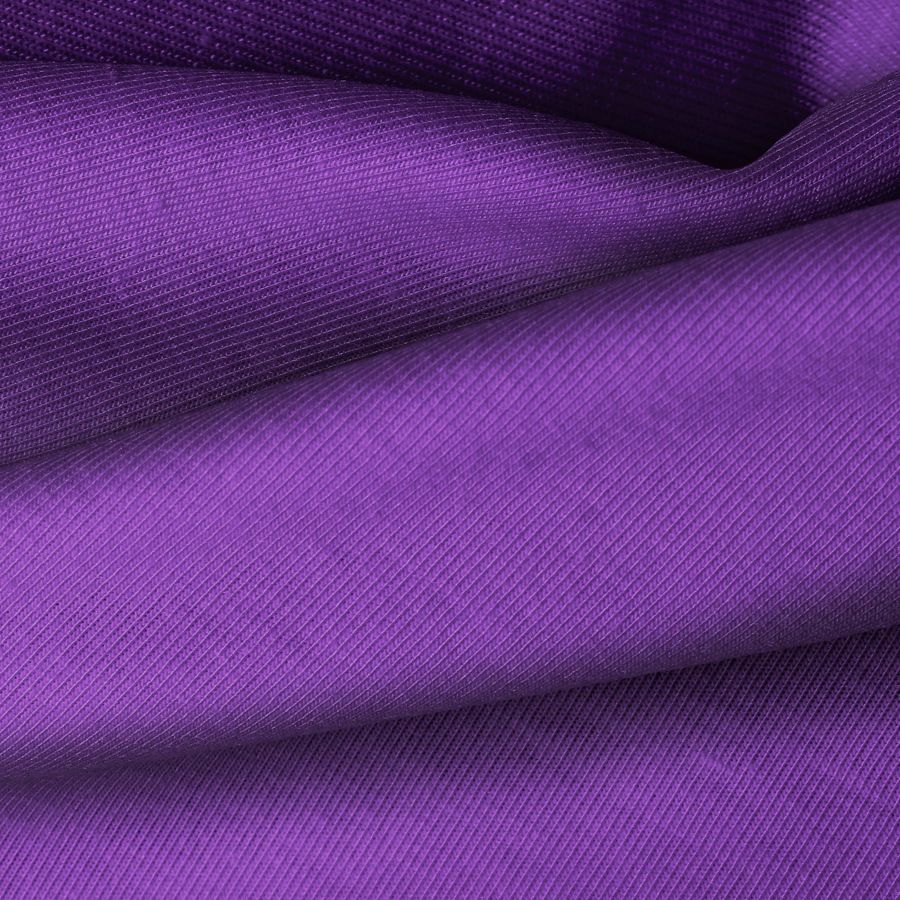 La tela base de este textil es Punto Camiseta - Vanity, con un color liso impreso en tono Morado Iris, cuyo CMYK es 76 95 4 0. Este color simboliza la creatividad, la inspiración y la intuición. Combina perfectamente con colores como blanco, negro y gris, lo que le da versatilidad y elegancia.