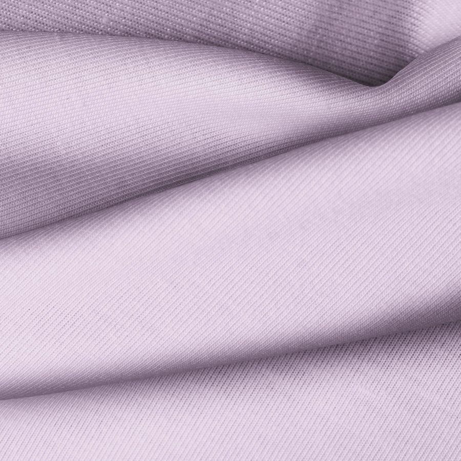 La tela base Punto Camiseta - Vanity tiene un color liso impreso en tonos Morado y Lila, representado por un CMYK de 21 34 4 0. Este tono secundario simboliza la creatividad y la espiritualidad, combinando muy bien con tonos neutros como grises y blancos, así como con tonos más vibrantes como el rosa y el turquesa.