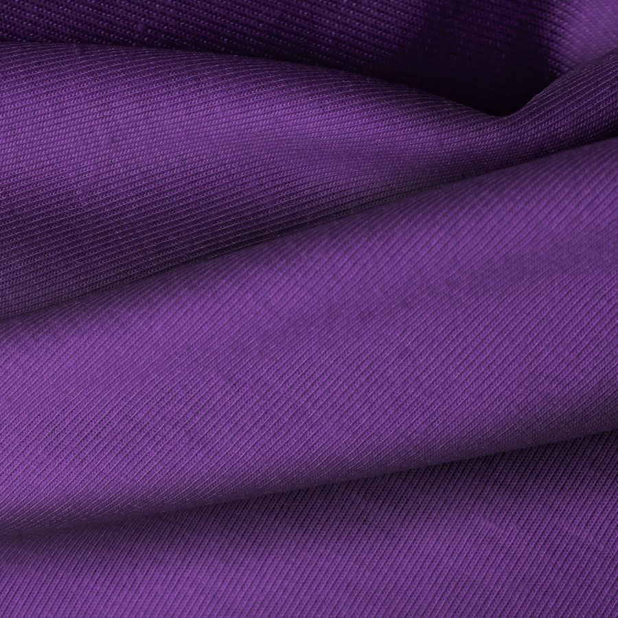 La tela base de este tejido es el Punto Camiseta - Vanity, con una composición de 95% POLIÉSTER y 5% ELASTÓMERO. El color liso impreso es Morado Oscuro, con una combinación de tintas Cyan 83, Magenta 100, Yellow 28 y Black 17, representando un CMYK de 83 100 28 17. Este color simboliza la elegancia y la sofisticación, siendo perfecto para prendas de moda tanto para mujer como para hombre. Combina especialmente bien con colores como blanco, gris y negro.