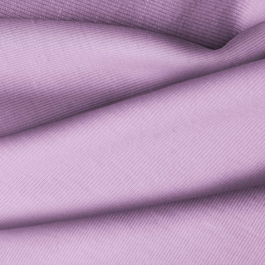 La tela base de la Tela de Punto Vanity es de color Morado/Lila pálido, con un CMYK de 32 50 5 0, lo que le confiere un tono suave y delicado. Este color secundario combina perfectamente con tonos neutros como blanco, gris y negro, así como con otros tonos pasteles como el rosa, el azul claro o el amarillo.