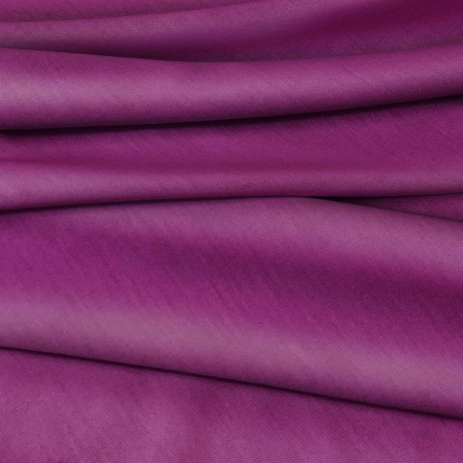 La tela base, Punto Camiseta - Vanity, es una tela de punto compuesta por 95% POLIÉSTER y 5% ELASTÓMERO, con un gramaje de 185 gr/m2, de color liso Morado Berenjena con un CMYK de 53 99 25 18. Es suave y elástica. Combina perfectamente con tonos neutros y complementarios como blanco, gris y amarillo.