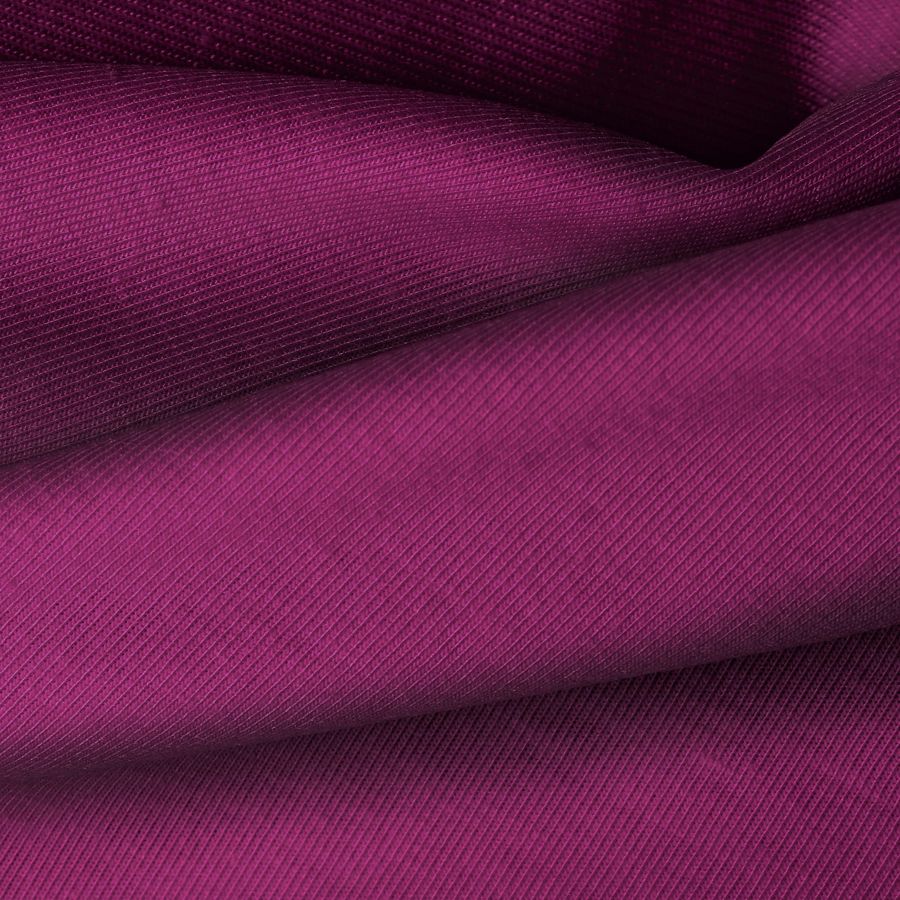 El tejido está impreso con el color liso a una sola cara por impresión digital textil, lo que garantiza una alta calidad y durabilidad en el color. La textura suave y elástica de la tela base se complementa perfectamente con la intensidad y la riqueza del color Morado Berenjena, creando una combinación elegante y moderna.