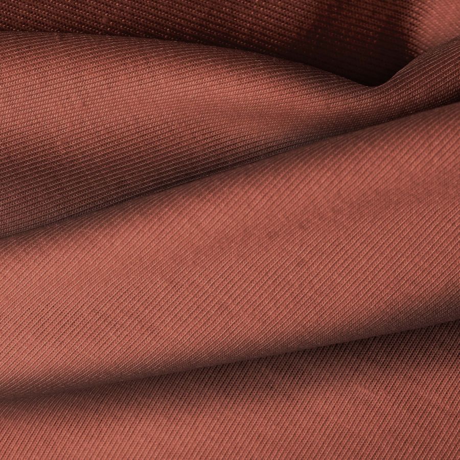 La tela base de la Punto Camiseta - Vanity es de un color liso impreso que se describe como Marron Sangre, con un tono intenso y vibrante representado por un CMYK de 33 74 71 40. Este color secundario se caracteriza por su profundidad y calidez, combinando especialmente bien con tonos neutros como el blanco, negro y gris, así como con colores tierra como el beige y el marrón.