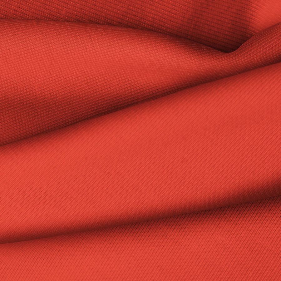 La tela base de la Punto Camiseta - Vanity es un tejido de punto compuesto por 95% POLIÉSTER y 5% ELASTÓMERO, con un gramaje de 185 gr/m2 y un ancho de 160 cm. El color liso impreso es un Rojo Toronja, con un CMYK de 16 87 84 6. Este color secundario combina tonos rojos y anaranjados, ideal para prendas llamativas y modernas.
