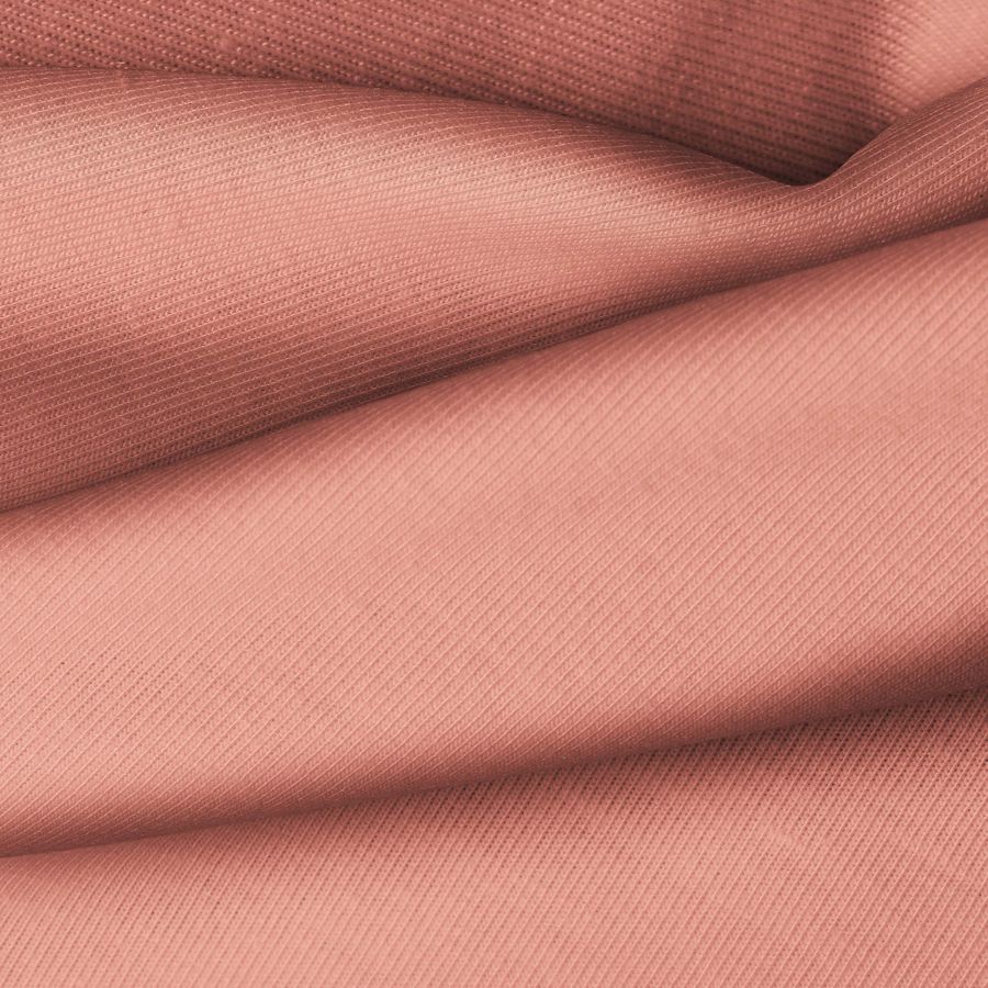 La tela base, Punto Camiseta - Vanity, presenta un color liso impreso en tonos de Rosa y Coral, con un CMYK de 15 60 52 4. Este color vibrante combina perfectamente con tonos neutros como el blanco y el gris para crear un contraste llamativo y elegante.