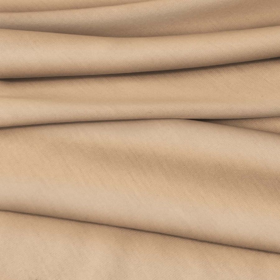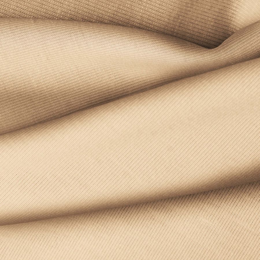 La tela base, Punto Camiseta - Vanity, es de textura suave y elástica, con una composición de 95% poliéster y 5% elastómero, con un gramaje de 185 gr/m2 y una anchura de 160 cm. El color liso impreso es Marron Azúcar moreno, con un CMYK de 10 34 48 2, lo que le da un aspecto cálido y terroso. Este color combina especialmente bien con tonos neutros como beige, blanco y negro, así como con tonos tierra como marrón oscuro y verde oliva.