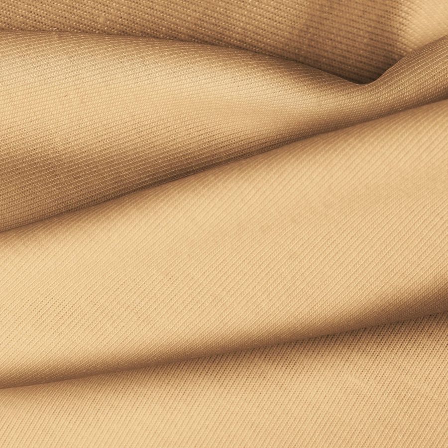 La tela base es un Punto Camiseta - Vanity de composición 95% POLIÉSTER, 5% ELASTÓMERO, con un color liso impreso en tono Naranja Cantalupo, con una combinación de tintas en Cyan: 11, Magenta: 41, Yellow: 59 y Black: 2, dando un resultado en CMYK de 11 41 59 2. Este color secundario simboliza la energía, la creatividad y la pasión, y se combina especialmente bien con tonos neutros como el blanco y el gris, así como con tonalidades complementarias como el azul y el verde.