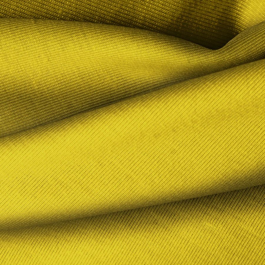 La tela base de la Punto Camiseta - Vanity es de composición 95% POLIÉSTER y 5% ELASTÓMERO, con un gramaje de 185 gr/m2. El color liso impreso es Amarillo Olivo, con una combinación de tintas Cyan 26, Magenta 30, Yellow 98 y Black 10 en el CMYK 26 30 98 10. Este color secundario se destaca por su tonalidad cálida y vibrante, que combina perfectamente con colores neutros como blanco, negro y gris, así como con tonos tierra y azules.