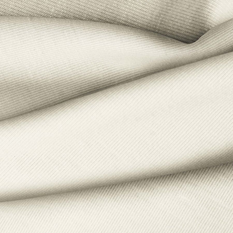 La tela base es una Tela de Punto llamada Punto Camiseta - Vanity, con composición de 95% POLIÉSTER y 5% ELASTÓMERO. El color liso impreso es Crudo/Vainilla con un CMYK de 4 6 23 0, lo que indica una tonalidad suave y cálida que combina bien con tonos neutros y pasteles.