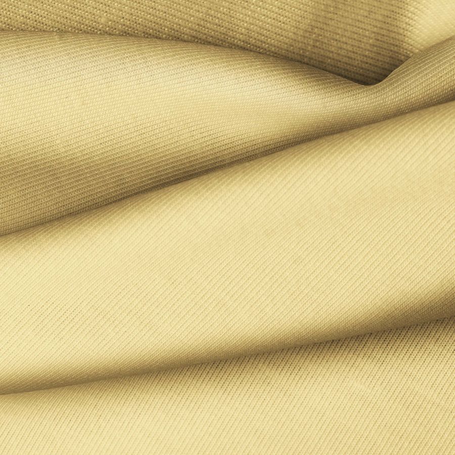 La tela base es una Tela de Punto denominada Punto Camiseta - Vanity, compuesta por un 95% de poliéster y un 5% de elastómero. El color liso impreso es Amarillo-Bronceado, con una combinación de tintas Cyan 9, Magenta 23, Yellow 59 y Black 1, que dan como resultado un CMYK de 9 23 59 1. Este color secundario simboliza la energía y la creatividad, se combina especialmente bien con tonos neutros como el blanco, gris y negro.