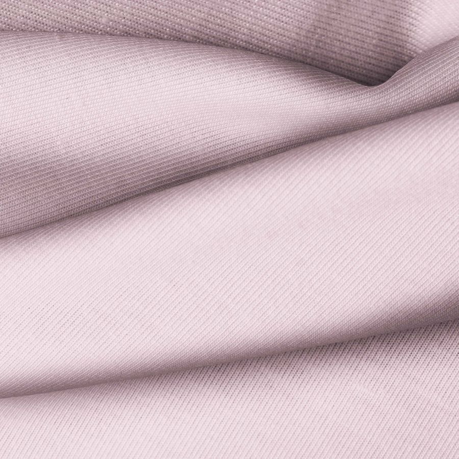 La tela base de esta descripción es el Punto Camiseta - Vanity en un color liso impreso en tono Rosa Claro Oscuro, con un perfil de color CMYK de 9 31 13 0. Este color secundario se caracteriza por transmitir una sensación de suavidad y delicadeza, ideal para prendas de lencería o moda femenina. Combina especialmente bien con tonos neutros como gris claro o blanco para crear looks delicados y femeninos.