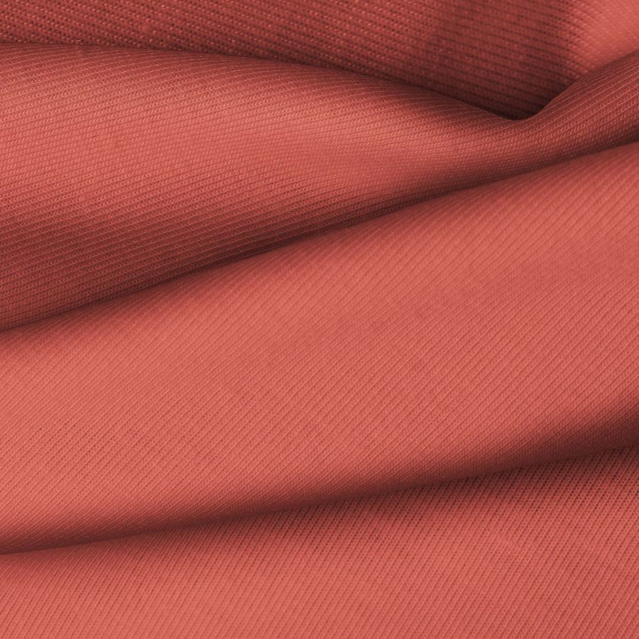 Las características de la tela base son su suavidad y elasticidad, ofreciendo un tacto agradable y cómodo. El color liso impreso resalta la intensidad y profundidad del rojo ladrillo, brindando un aspecto vibrante y moderno a la tela.