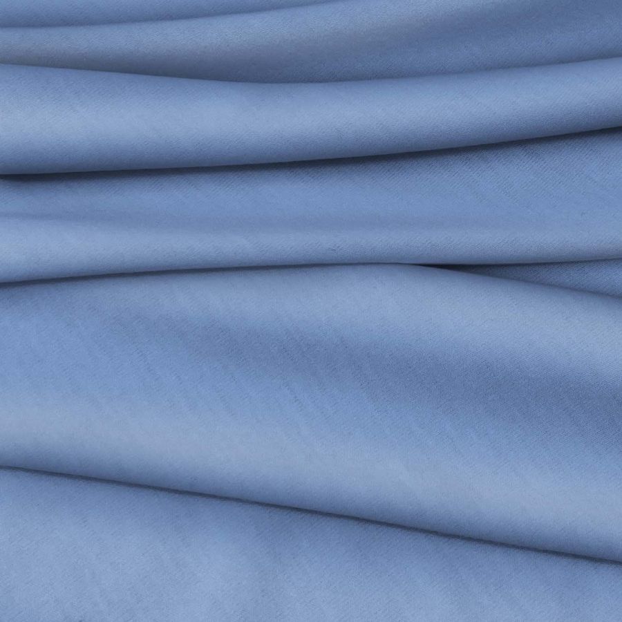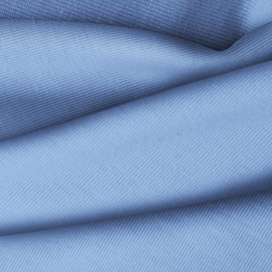 La tela base es de Punto Camiseta - Vanity, de color Azul y Violeta claro, con una composición de CMYK de 62 40 5 0. Este color secundario simboliza la tranquilidad y la creatividad, combinándose especialmente bien con tonos neutros como blanco, gris y beige.