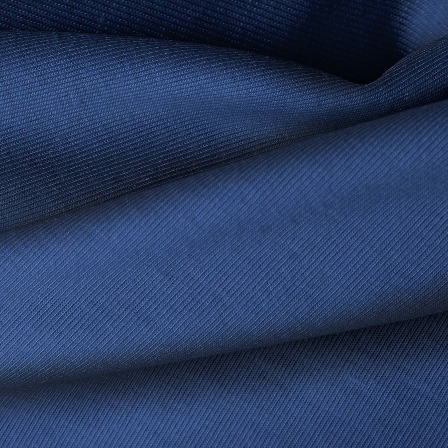 La tela base utilizada es Punto Camiseta - Vanity, de composición 95% poliéster y 5% elastómero, con un gramaje de 185 gr/m2 y un ancho de 160 cm. El color liso impreso es Azul Profundo, con una combinación de tintas CMYK de 100 84 37 27. Este color simboliza la profundidad y la serenidad, y se combina especialmente bien con tonos neutros como el blanco o el gris.