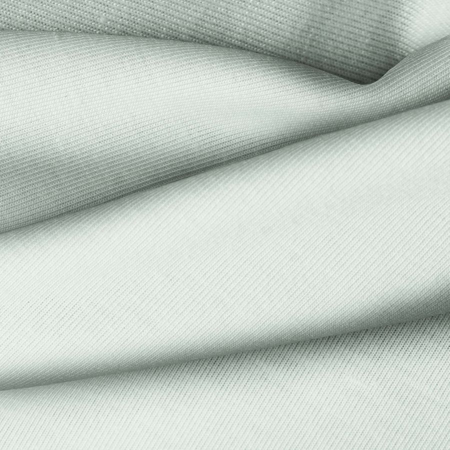 La tela base es Punto Camiseta - Vanity de color verde, crema de menta, con un CMYK de 24 4 22 0. Este color transmite frescura y naturalidad, combinando a la perfección con tonos neutros como el blanco y colores pastel como el rosa y el azul claro.