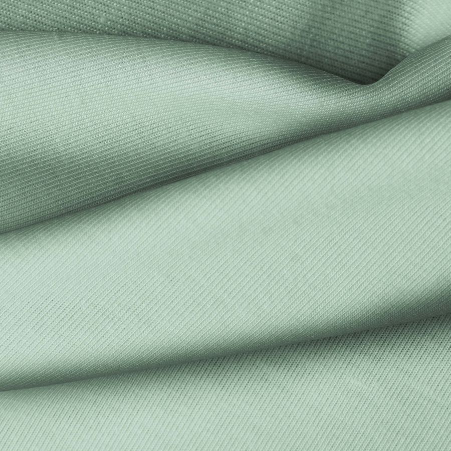 La tela base, Punto Camiseta - Vanity, es de punto y está compuesta por un 95% de poliéster y un 5% de elastómero. Su color liso impreso es Verde DarkSeaGreen, con un CMYK de 49 18 43 3. Este color evoca la naturaleza y la frescura, combinando tonos de verde intenso y azul marino, ideal para prendas de moda juvenil y deportiva.