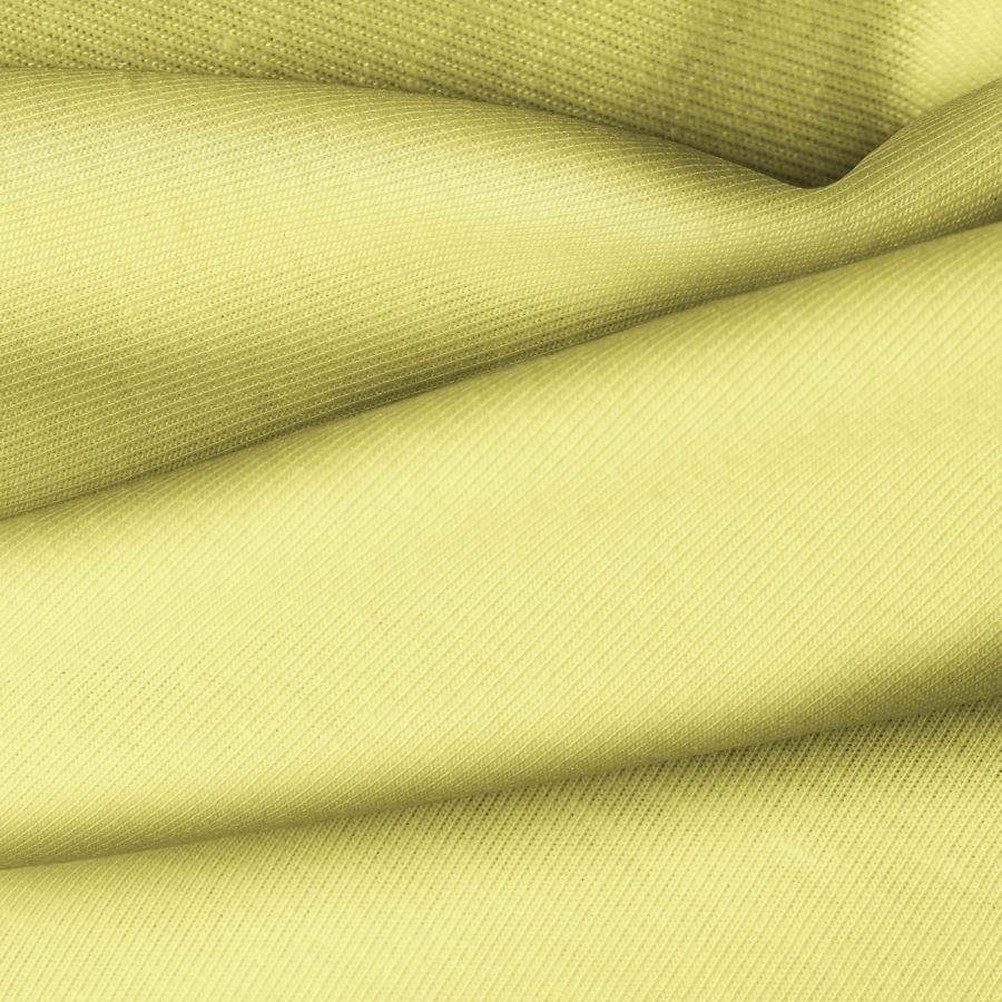 La tela base es de Punto Camiseta - Vanity, de composición 95% POLIÉSTER y 5% ELASTÓMERO, con un color liso impreso en tono Amarillo Maíz, con un CMYK de 11 4 66 0. Este color es vibrante y cálido, ideal para prendas de moda y deportivas. Combina muy bien con colores neutros como blancos y grises.