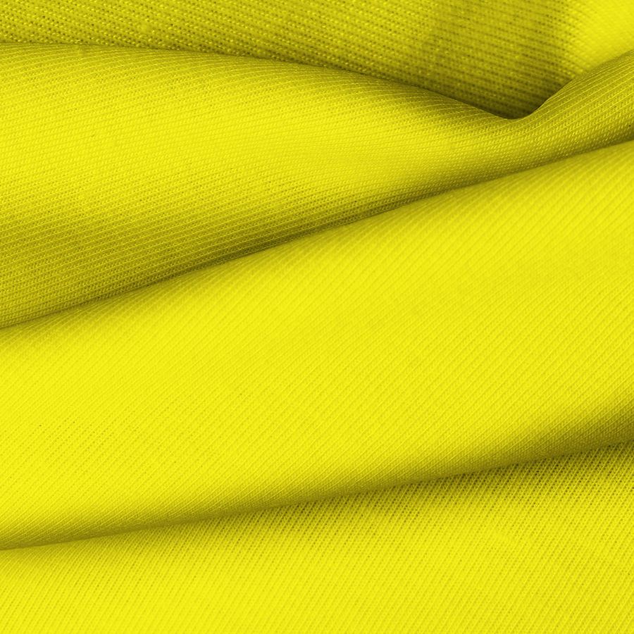 La tela base de este tejido es Punto Camiseta - Vanity, con una composición de 95% POLIÉSTER y 5% ELASTÓMERO. El color liso impreso es Amarillo Oro, con un CMYK de 10 2 91 0. Este color se caracteriza por ser brillante, cálido y de alta luminosidad, combina especialmente bien con tonos neutros como blanco, negro y gris.