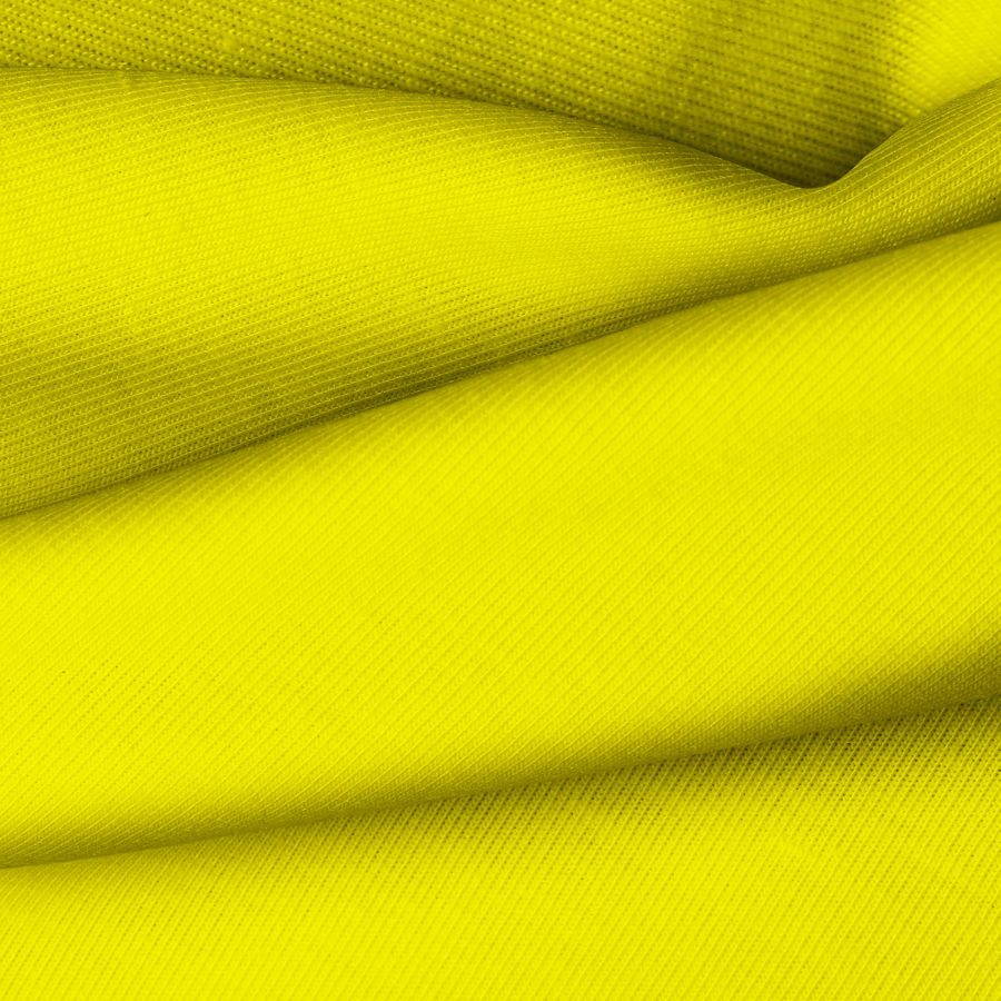 La tela base, Punto Camiseta - Vanity, es de color amarillo dorado, con una composición de 95% poliéster y 5% elastómero, reflejando un CMYK de 12 3 93 0. Este color simboliza la alegría y la energía, combinando la luminosidad del amarillo con la elegancia del dorado. Se puede combinar con tonos neutros como blanco o negro, así como con colores más vibrantes como el naranja o el verde lima.