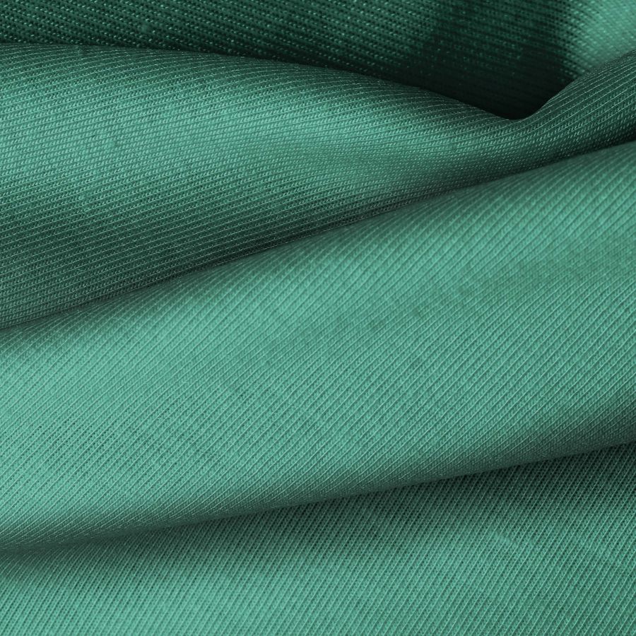 La tela base, Punto Camiseta - Vanity, tiene un color liso impreso en Verde Mar profundo, con el siguiente contenido de CMYK: 76 31 61 17. Este color se caracteriza por su profundidad y frescura, evocando la calma del mar y la naturaleza. Combina especialmente bien con tonos neutros como el blanco, el beige y el gris.
