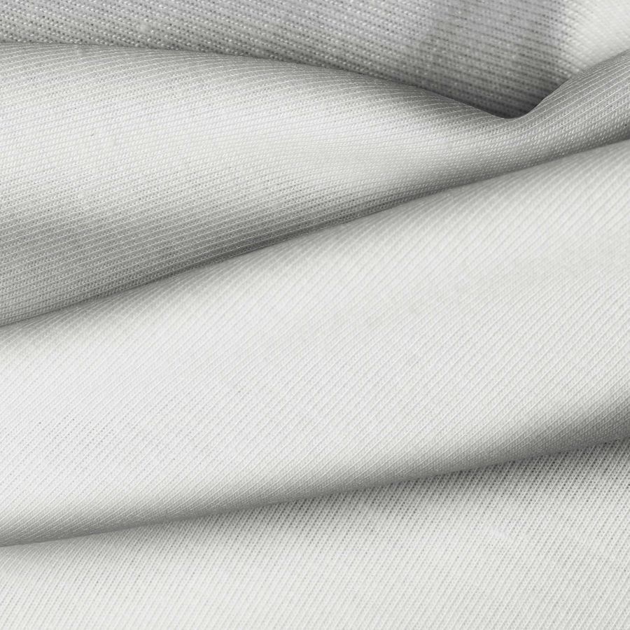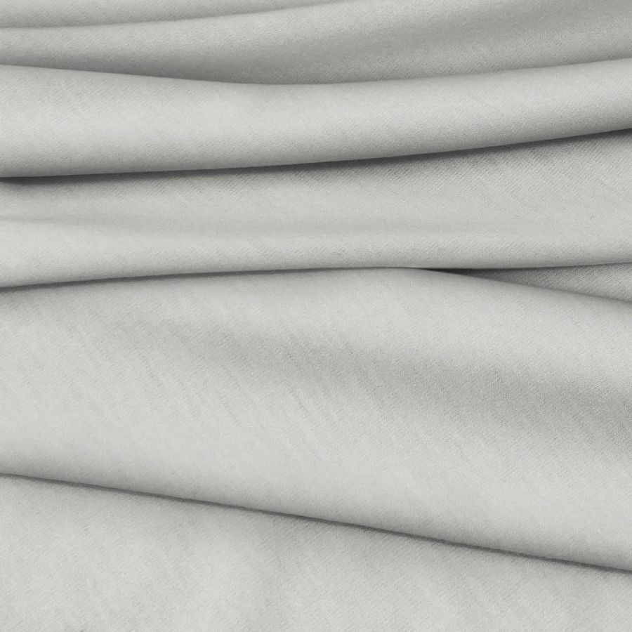Las características generales de la tela base incluyen una textura suave y elástica, ideal para prendas de vestir cómodas y ajustadas al cuerpo. El color liso Gris Nube aporta un toque sofisticado y versátil a cualquier prenda, perfecto para outfits tanto casuales como más formales.