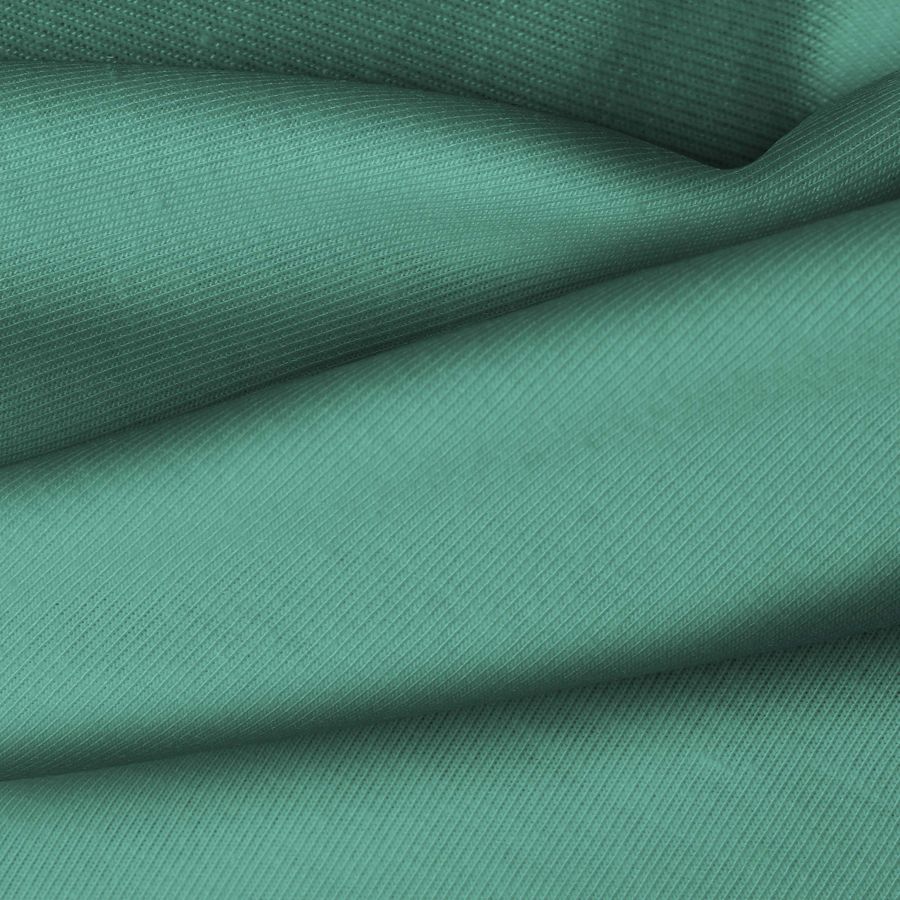 La tela base, Punto Camiseta - Vanity, es una tela de punto compuesta principalmente por poliéster y elastómero con un gramaje de 185 gr/m2 y un ancho de 160 cm. El color liso impreso es Verde Menta Oscura, con un CMYK de 71 33 57 18. Este color es una mezcla armoniosa de tonos verdes y azules que transmite frescura y sofisticación. Combina especialmente bien con tonos neutros como blanco, gris y negro, así como con colores pastel como el rosa y el amarillo.