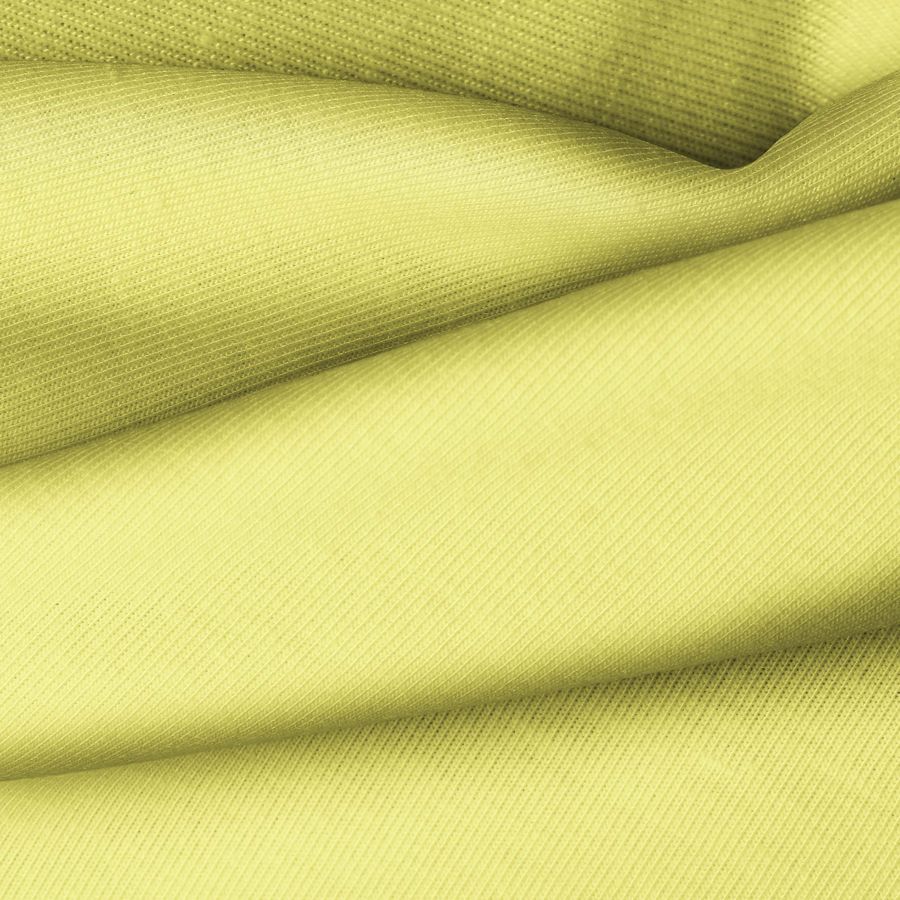 La tela base es Punto Camiseta - Vanity, de composición 95% POLIÉSTER, 5% ELASTÓMERO, con un color liso impreso de tonalidades Amarillo Plátano (CMYK: 12 1 69 0). Este color simboliza la alegría y la energía del verano, combinando muy bien con tonos neutros como blanco y gris.