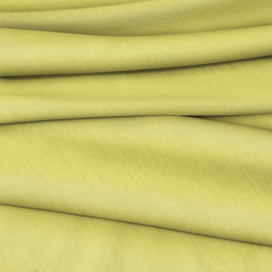 El tejido está impreso con el color liso a una sola cara por impresión digital textil, lo que le otorga una apariencia vibrante y duradera. La textura suave y elástica de la tela base se complementa perfectamente con la luminosidad y calidez del color Amarillo Plátano.