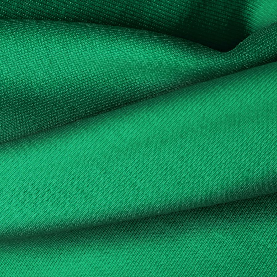 La tela base es una Punto Camiseta Vanity en color verde bosque oscuro, con un CMYK de 87 27 84 14. Este color refleja elegancia, serenidad y conexión con la naturaleza. Combina perfectamente con colores neutros como blanco, negro y beige, así como con tonos tierra como marrón y beige.